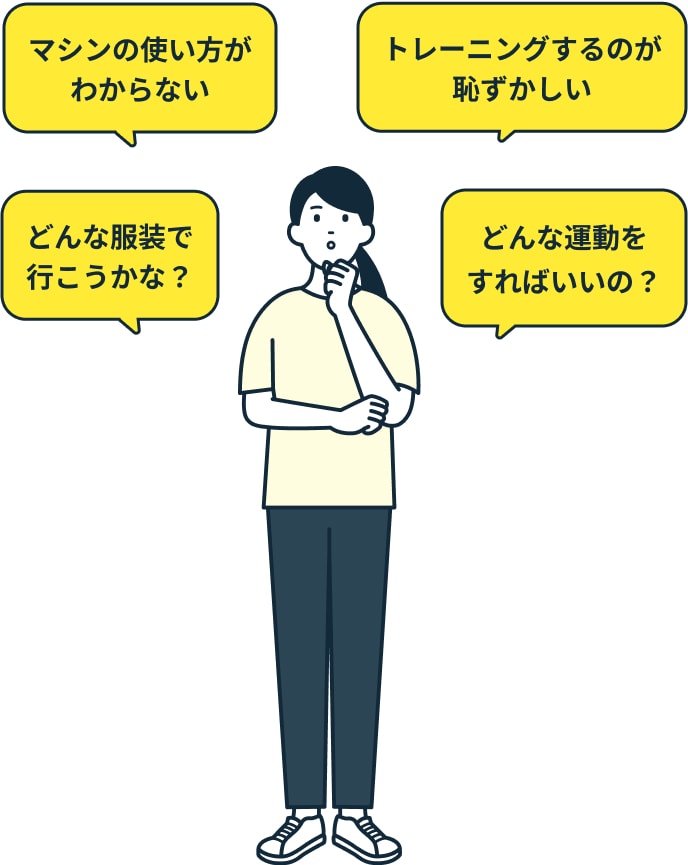 一人で初めてジムに通うのは不安ですよね。どのような運動をしたらよいのかわからない、マシンの使い方がわからないなどジム初心者の方ならではの不安があると思います。