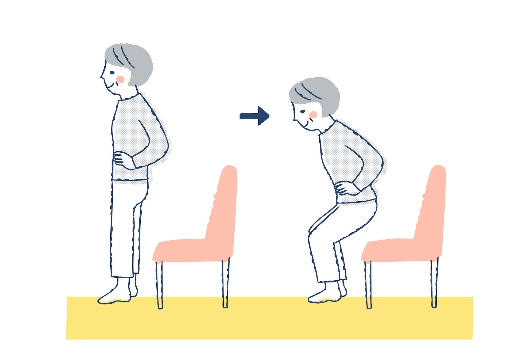 スクワットが辛い場合には、椅子に浅く座り、足を肩幅に開いた状態で立ったり座ったりを繰り返すだけでも効果があります。まずはできることから始めて、徐々に負荷を増やしていきましょう。