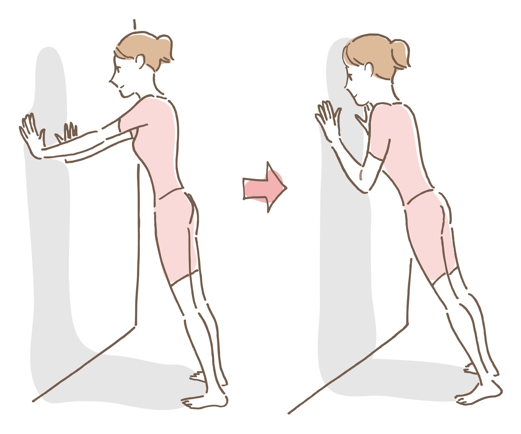 床面で腕立て伏せをするのが難しい人は、壁を使った腕立て伏せを実践してみましょう。壁に向かって立ち、両手を壁についた状態で、肘を外側に開きながらゆっくり胸を壁に近づけたら、元の位置に戻すを繰り返します。