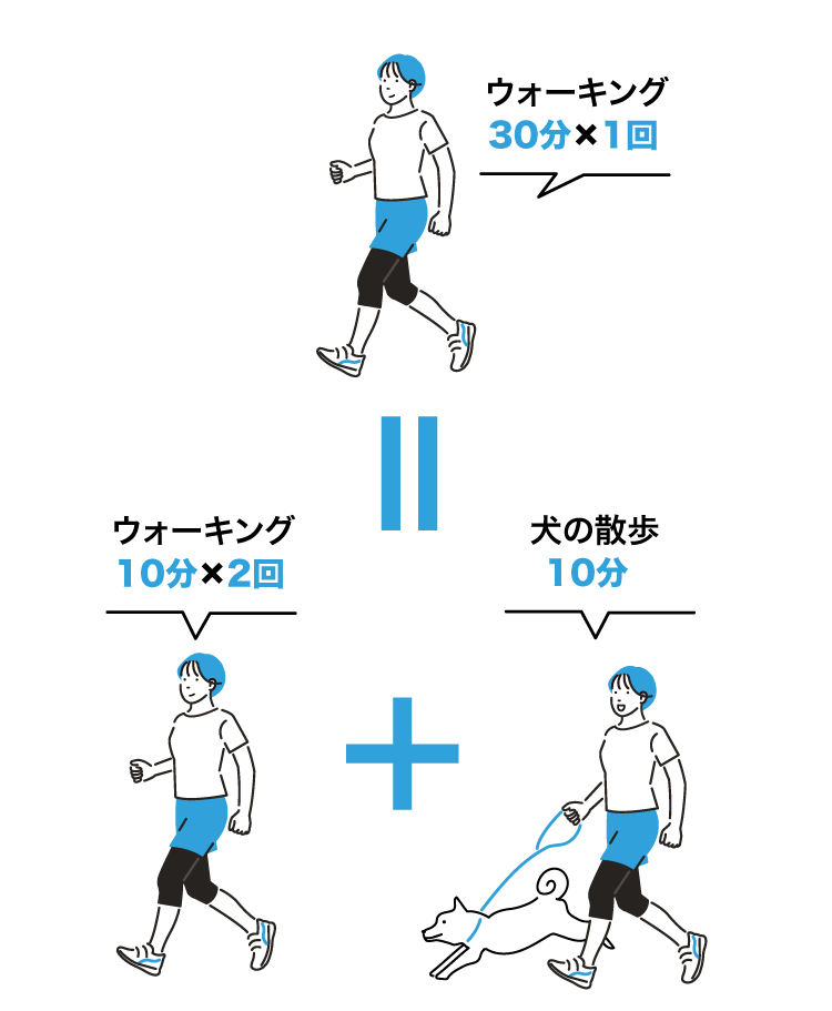 また、最近の研究では、1日30分の連続した運動も、10分ずつ3回に分けた運動も、同じような減量効果があることがわかっています。忙しい人も隙間時間を見つけて小分けに運動することで、十分な効果が期待できるでしょう。