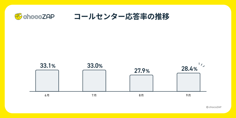 チャットボットのご利用も広がっておりますが、2024年9月度の応答率は28%台となっております。