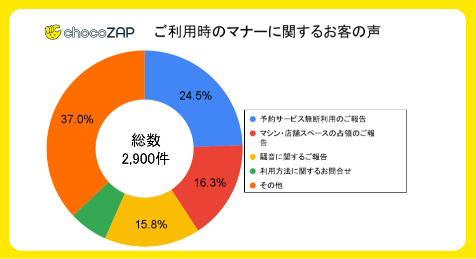 ご利用時のマナーに関するお客様の声では、予約サービス無断利用のご報告を最も多くいただいております。