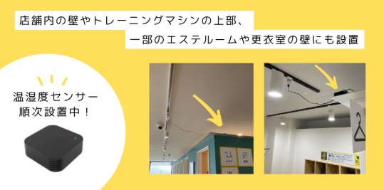 温湿度センサーは、店舗内の壁やトレーニングマシンの上部などに設置しております。