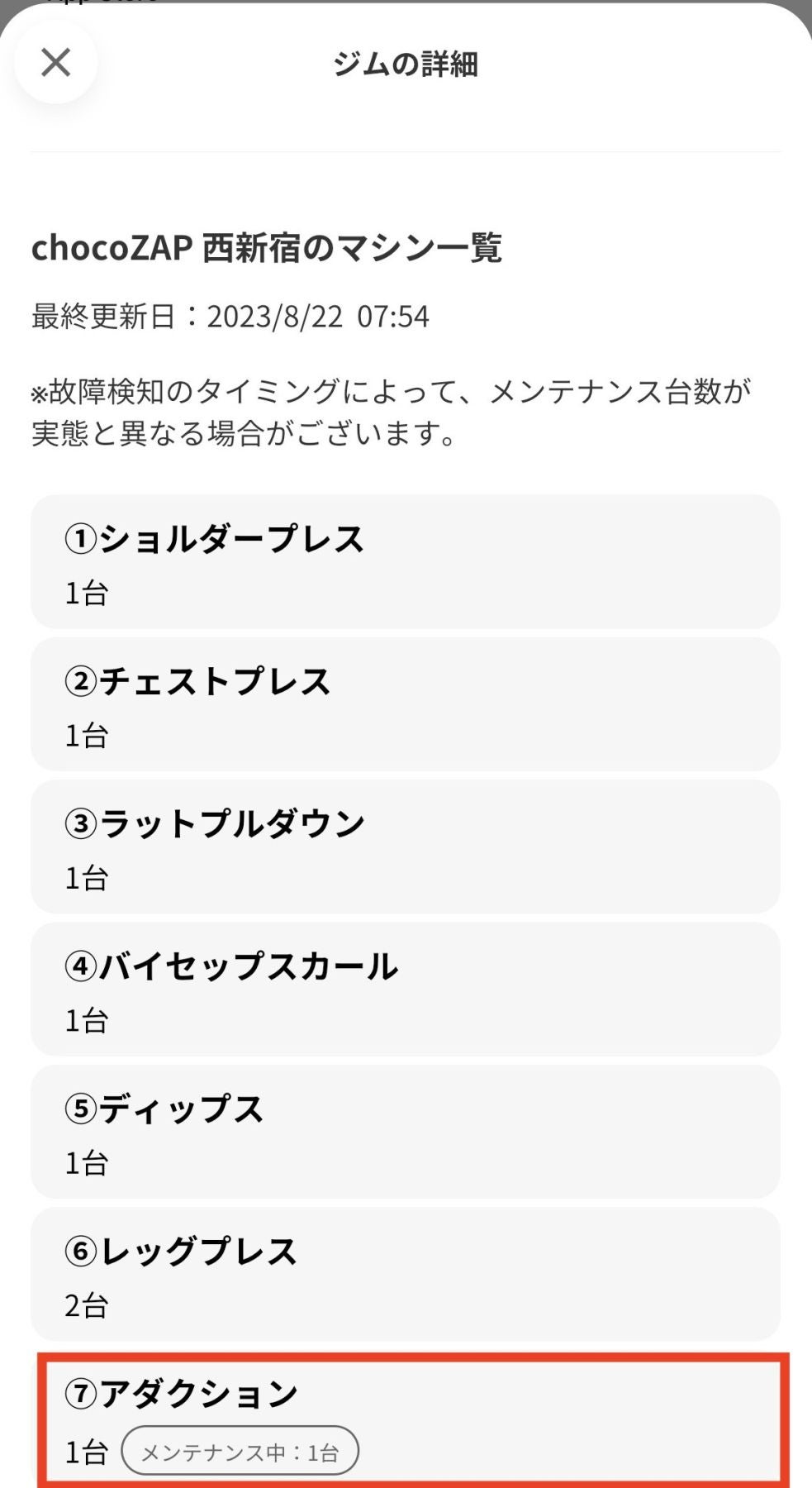 この状況を踏まえ、マシンの故障状況がアプリ内で確認できる新機能を追加しました。(※2023年8月23日追記)