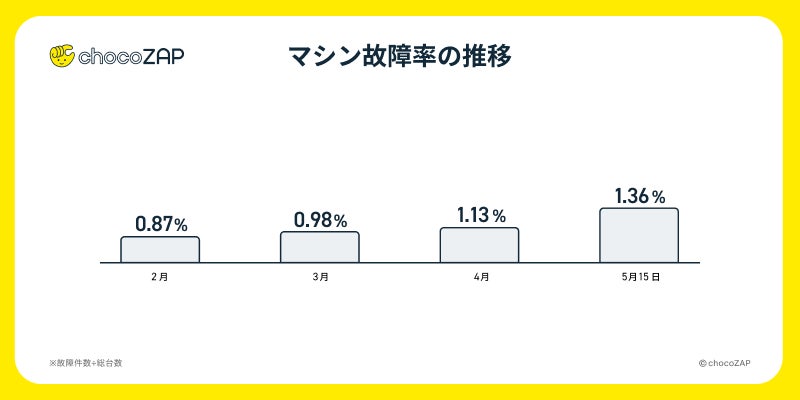 これに伴い、潜在故障が可視化したことで一時的なマシンの不具合率が増加している状況です。