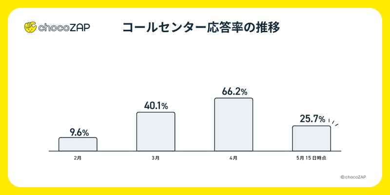 5月に上旬につきましては、GW期間中やキャンペーン終了直前の入電増加に伴い、応答率が低下してしまっておりました。お客様にはご迷惑をお掛けし誠に申し訳ございません。