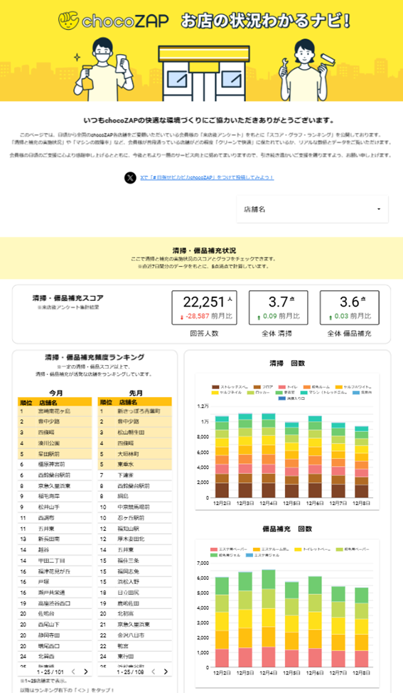 このたび、全店舗のマシン故障・対応状況や清掃頻度を一覧できる「chocoZAP お店の状況わかるナビ!」をリリースしました!