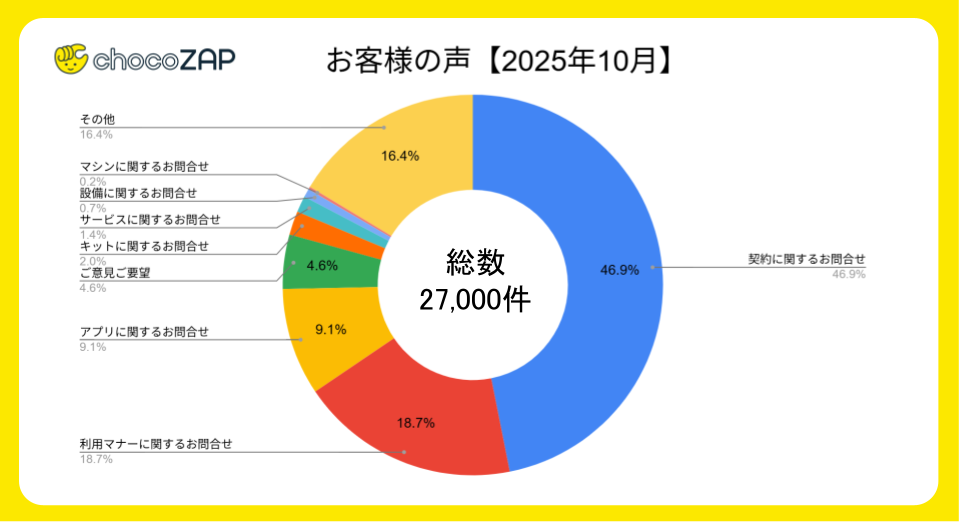 現在、chocoZAPのサポートフォームやコールセンターには、多数のお客様の声が寄せられております。