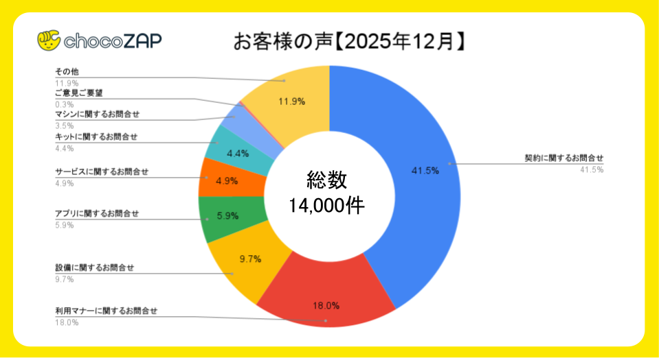 現在、chocoZAPのサポートフォームやコールセンターには、多数のお客様の声が寄せられております。
