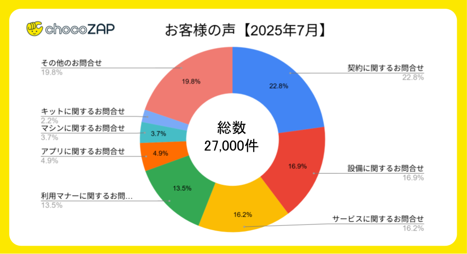 現在、chocoZAPのサポートフォームやコールセンターには、多数のお客様の声が寄せられております。