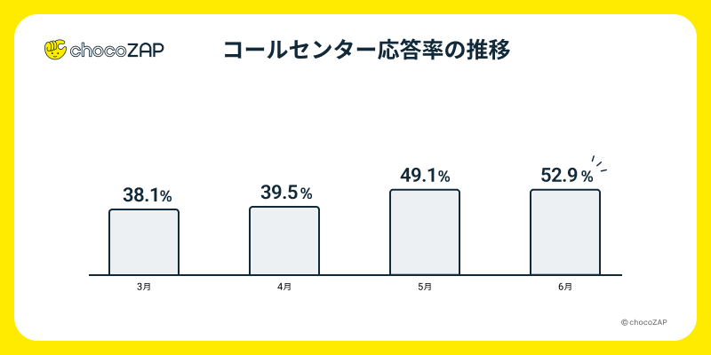 2025年6月度のコールセンターの応答率は52%となっております。より多くのお客様に快適にご利用いただけるよう、電話での対応に加え、チャットボットやサポートフォームによるお問い合わせ対応も行っております。