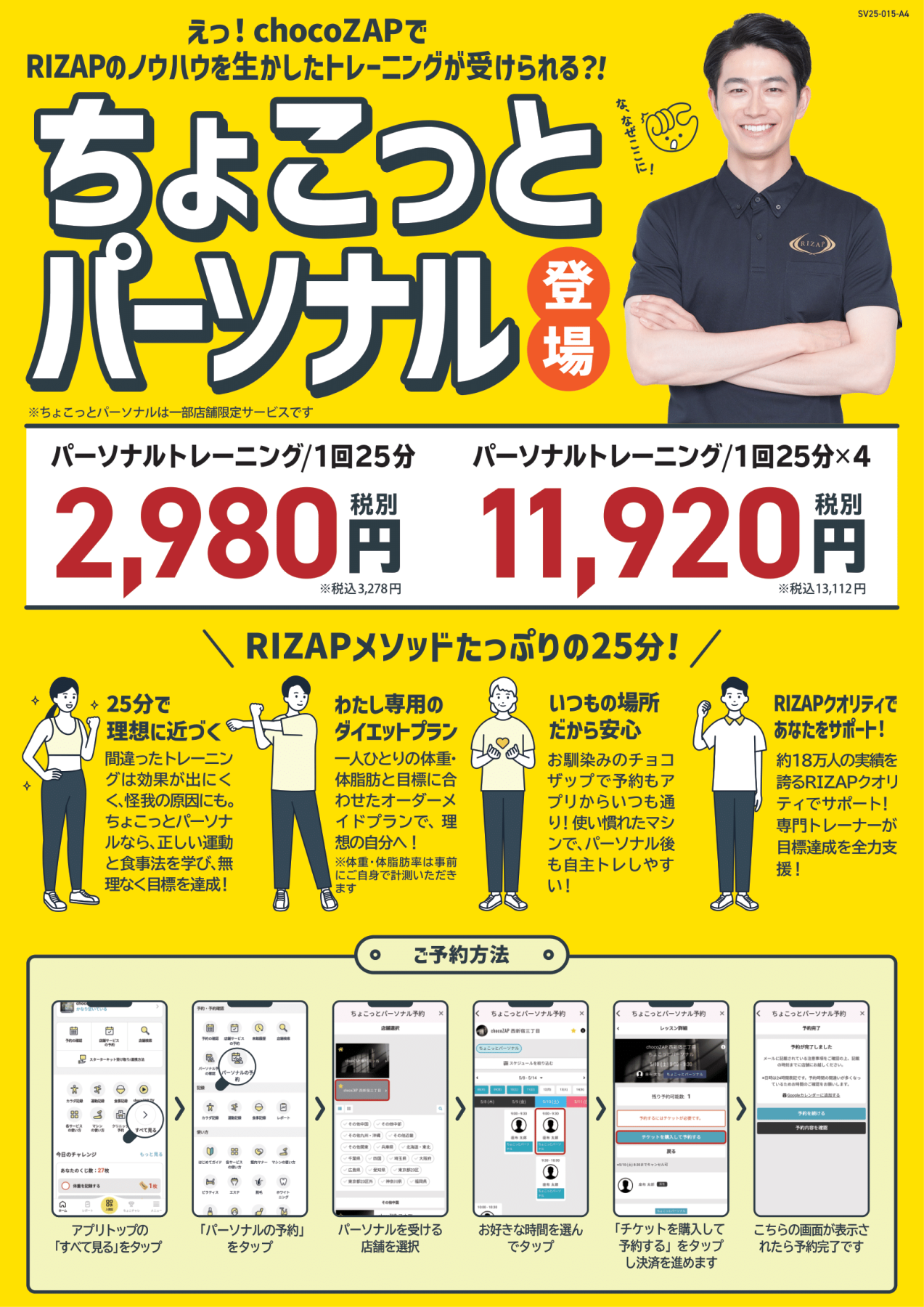 ◎新サービス「ちょこっとパーソナル」開始のお知らせ(一部店舗):
