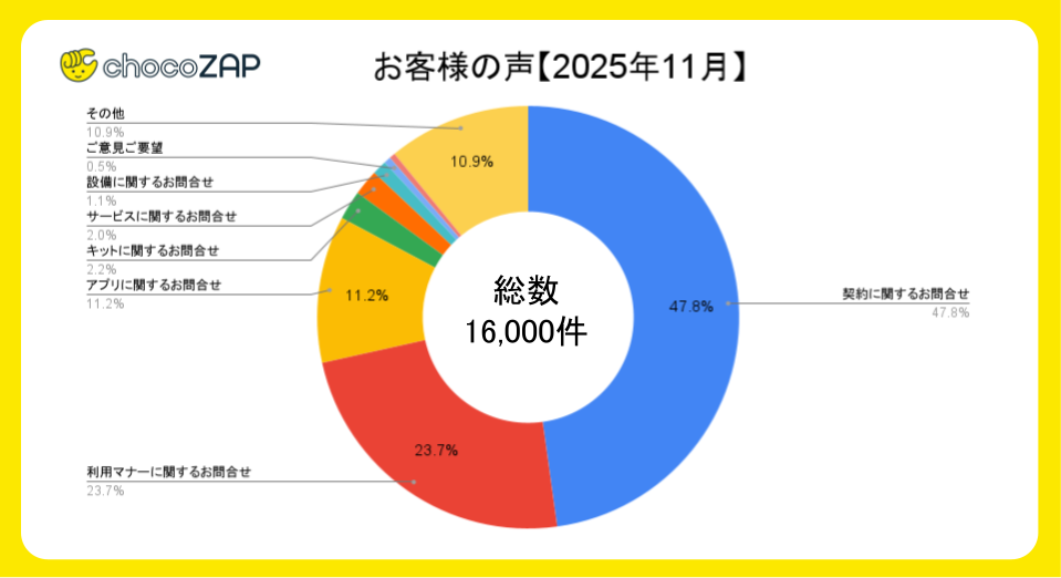 現在、chocoZAPのサポートフォームやコールセンターには、多数のお客様の声が寄せられております。