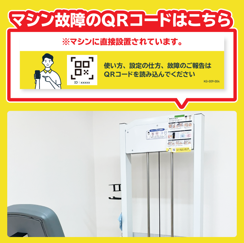 トレーニングマシン/サービス機器故障のご報告は各マシン/サービス機器に直接設置されているQRコードよりご報告ください。