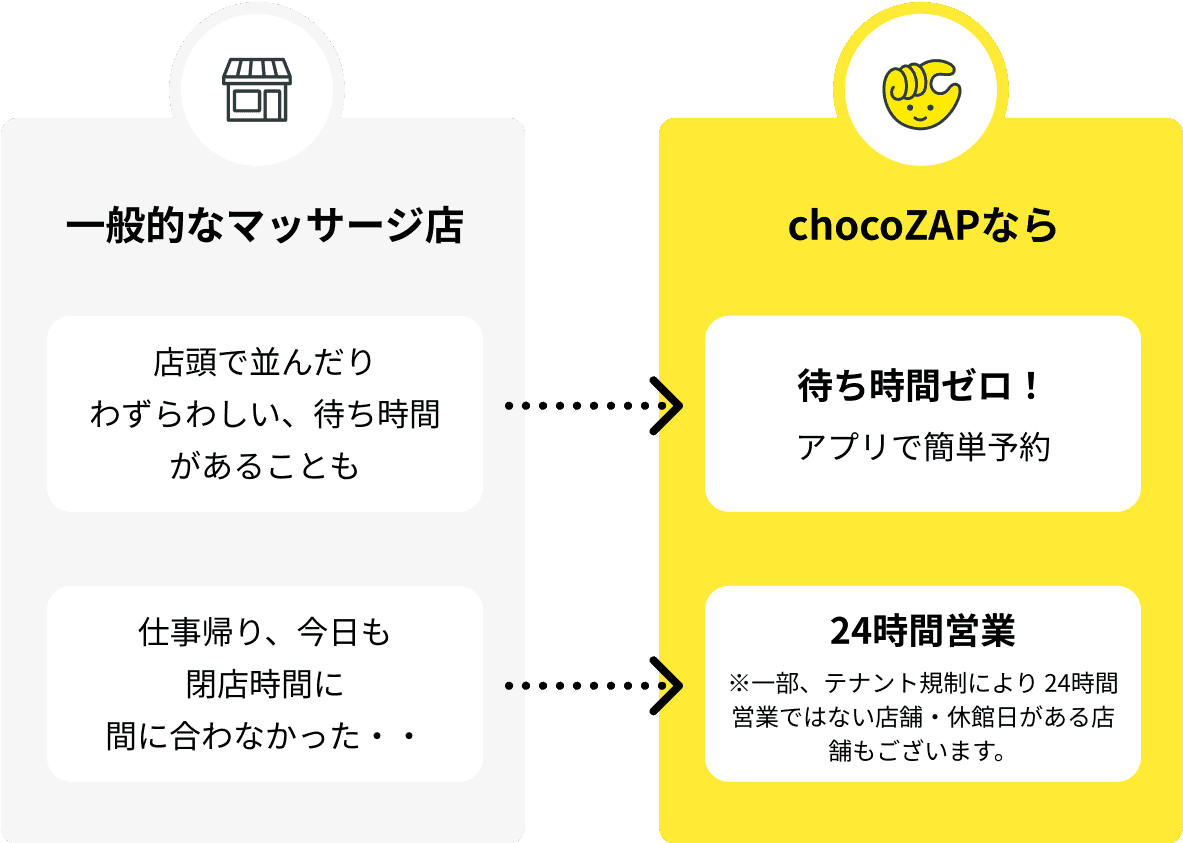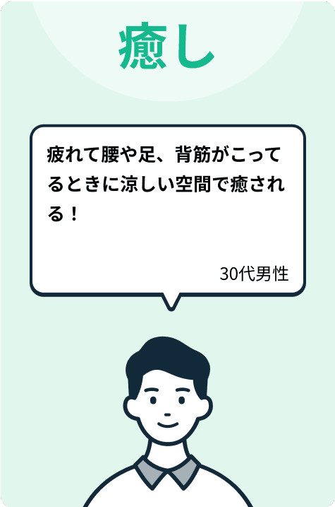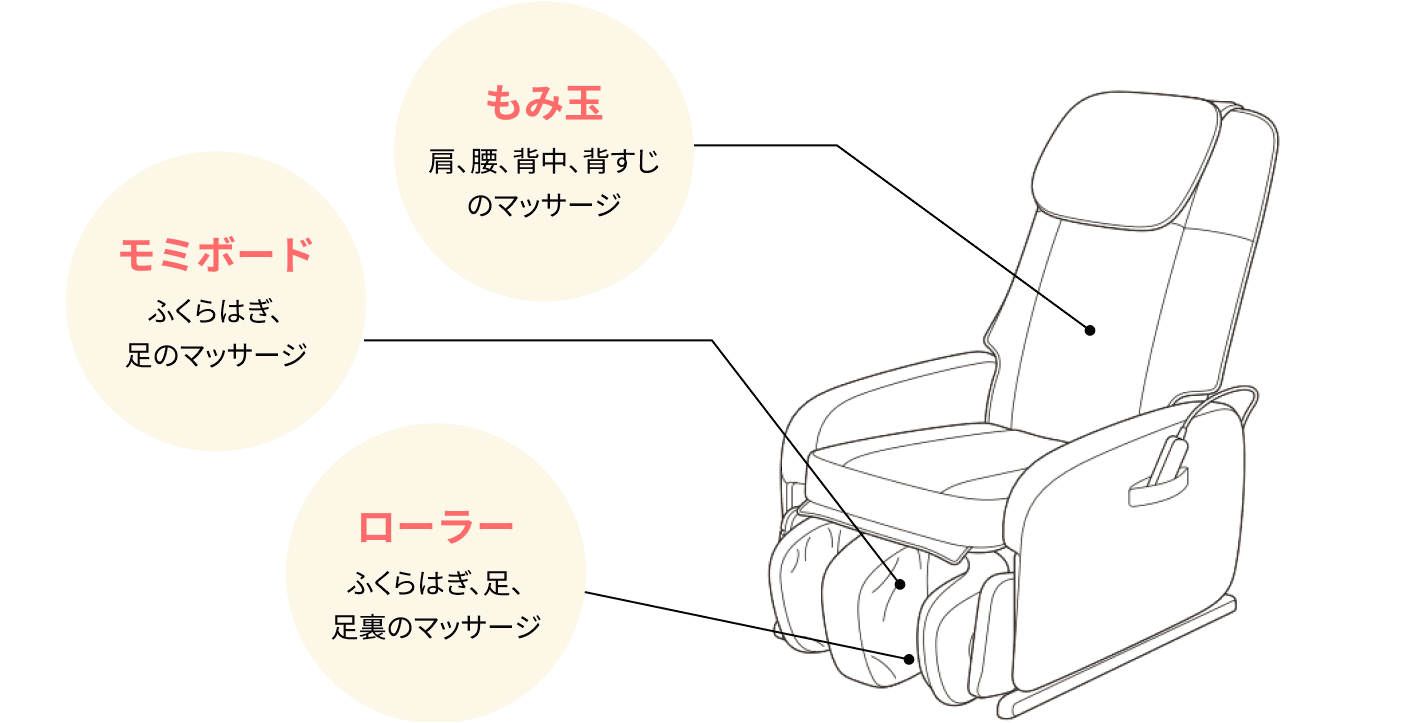 ※マッサージチェアは設置のない店舗があります。詳しくは店舗ページ (マッサージチェア対象店舗はこちら) でご確認ください。