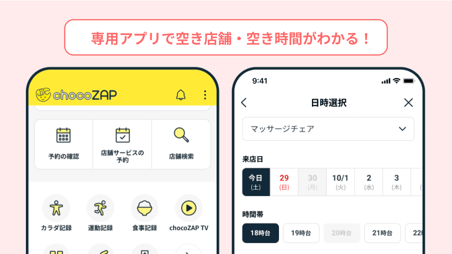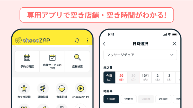 chocoZAPアプリの「店舗サービスの予約」からご予約ください。