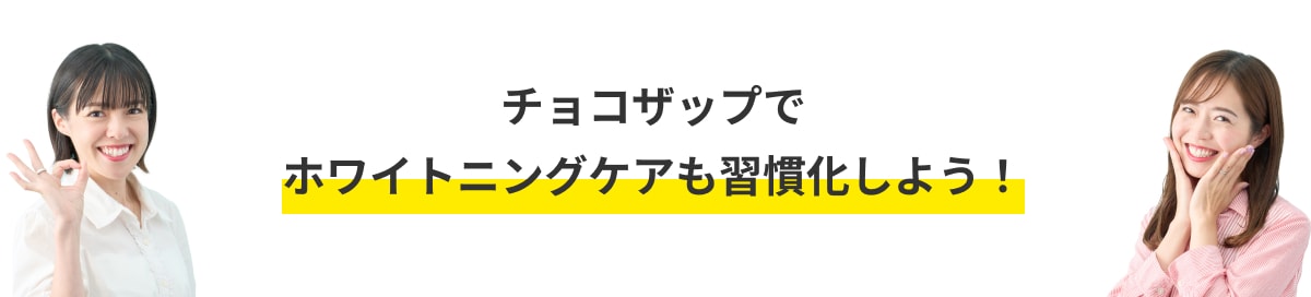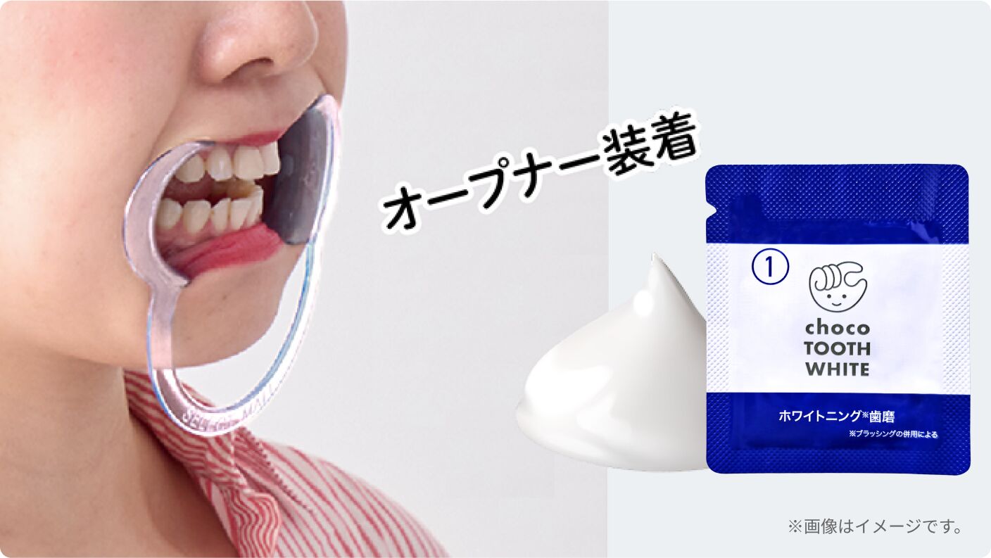 - ホワイトニングはオリジナル歯磨ペースト「choco TOOTH WHITE」とブラッシングによる。