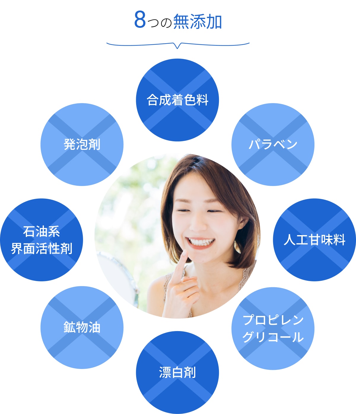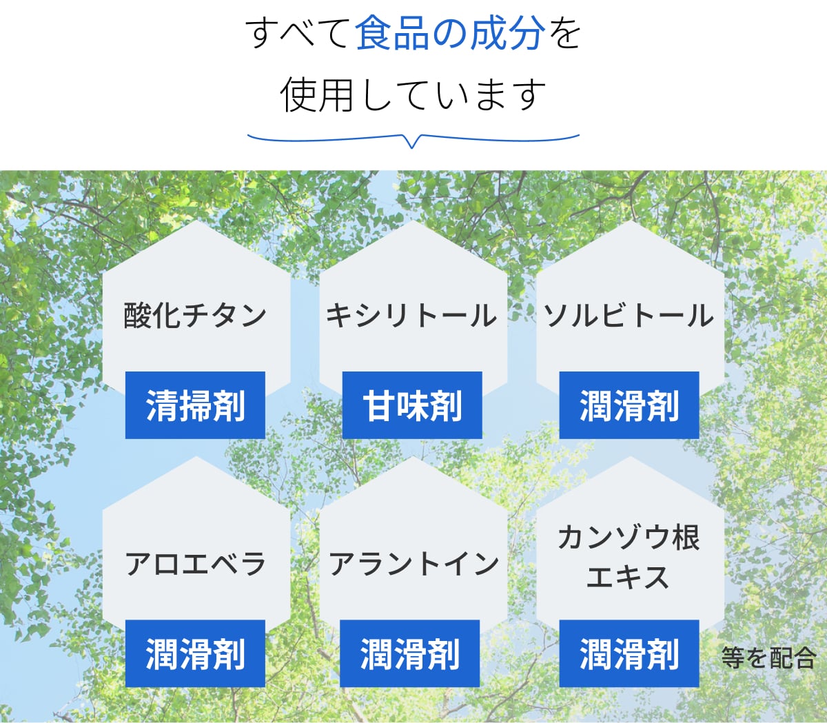 歯を美しくするだけでなく、健康を守ることにもこだわり、自然な成分を厳選しました。主成分は歯や歯茎にダメージを与えないため、「しみる」「痛む」といった心配はありません。